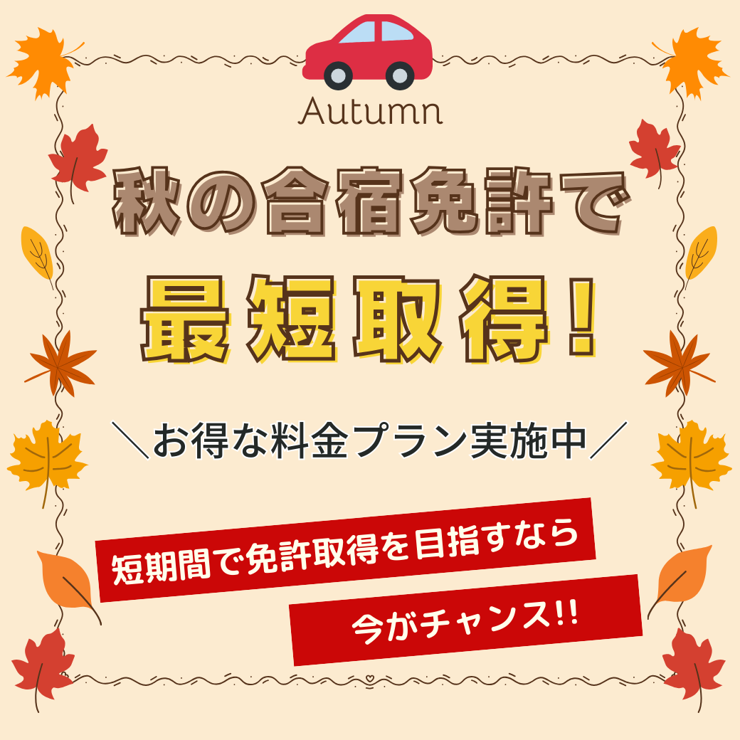 合宿教習は教習代金の中に「宿泊代」「食事代」が含まれているのに、地元の教習所で通うよりもお得な教習料金で免許取得できます。この機会に、合宿免許で運転免許を取得してみませんか?夏休みや春休みなどの学生さんのお休み期間は大変混み合いますのでお早めにお申込みください!