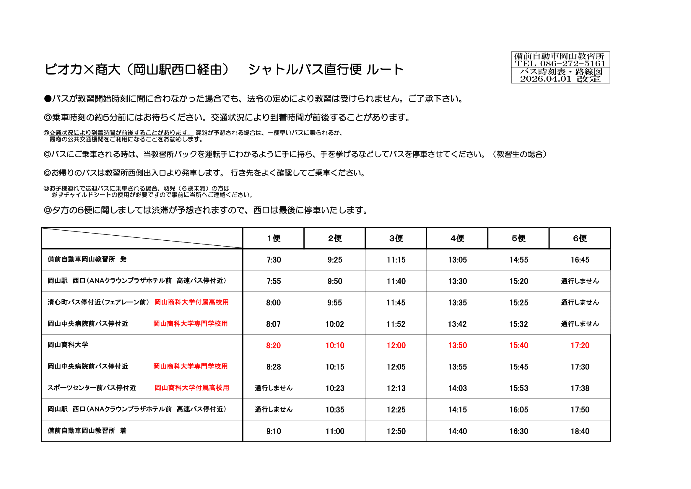 ビオカ(高島キャンパス)×商大(岡山駅西口経由) シャトルバス直行便 ルート